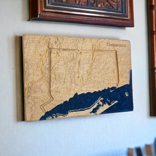 Connecticut 3D Topographic Relief Wood Map | Connecticut Gift