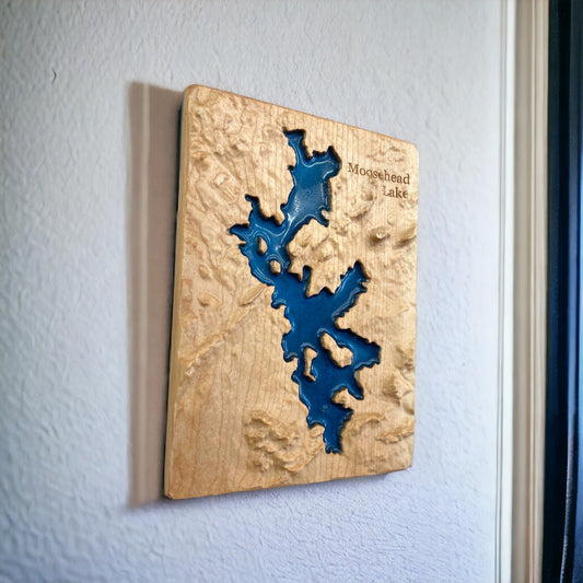 Moosehead Lake 3D Relief Wood-Carved Map | Maine State Gift