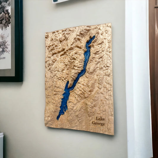 Lake George NY Wood-Carved 3D Relief Map | New York Gifts