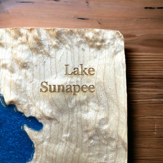 Lake Sunapee 3D Wood Epoxy Art Relief Map | Lake Sunapee NH Gift