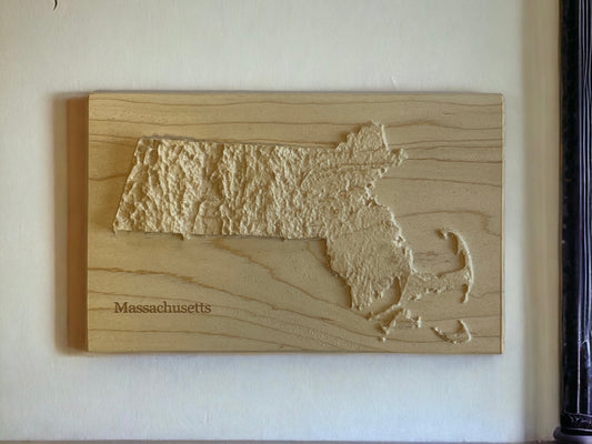 Massachusetts 3D Topographic Wood Carved Relief Map | Massachusetts Map Gift