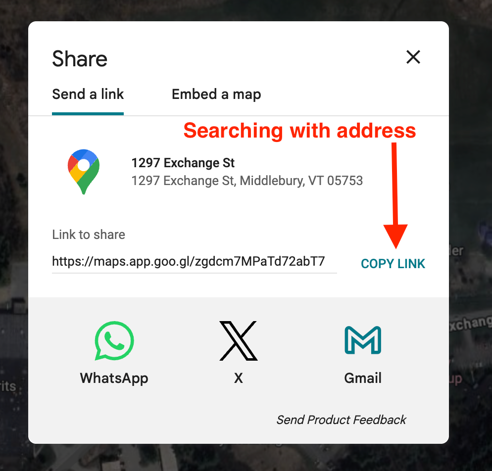 If you're using an address as a location for a marker, copy and paste the 'link to share' and add to the form.