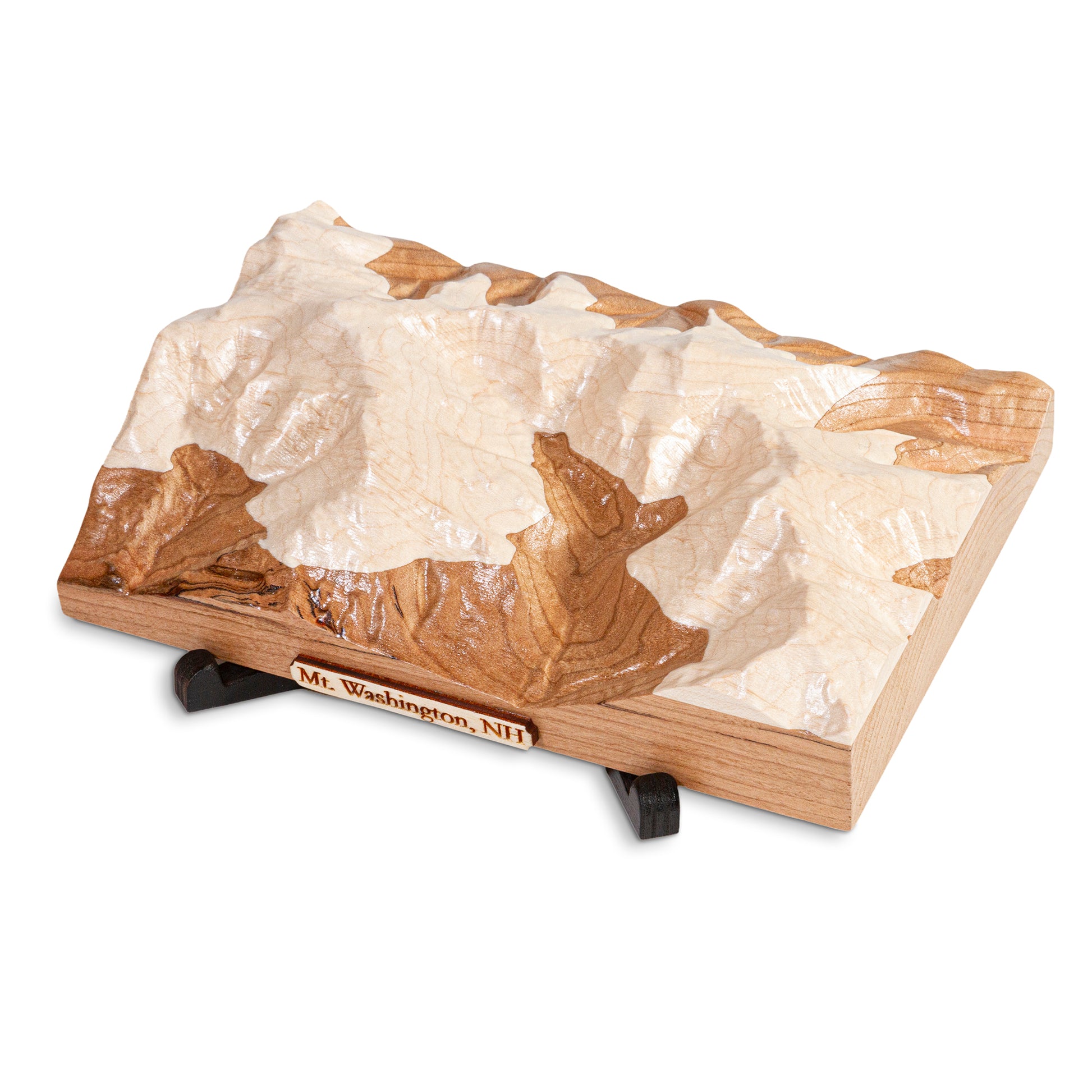 The Mountain Stand (flat version) pairs perfectly with the 6" x 8" mountain and ski resort maps by raising the back side for an angular display that better reveals the entire surface. Created from two pieces of 3/8" hardwood plywood and measuring 7 5/8" long and 1.5" wide (each single piece at its widest part), the map stand is excellent for use on desks, counters, coffee tables, mantles, side tables, pianos, or anywhere else you want to show off your map.