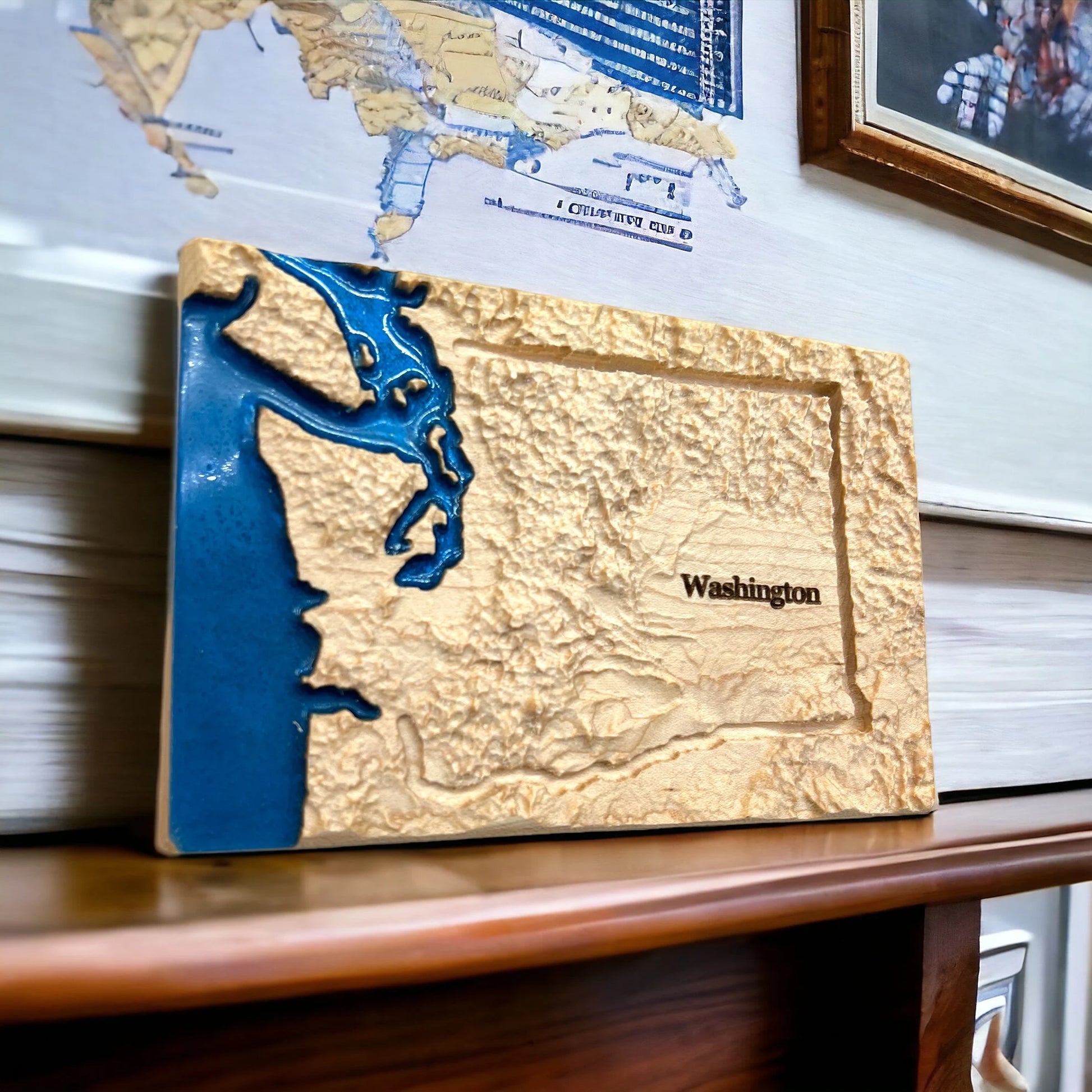 Washington Wood Carved 3D Topographic Relief Map | WA State Gift